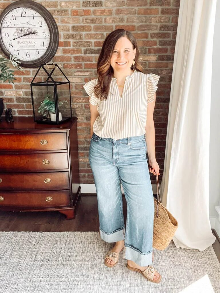 Striped Shirt, Cuffed Denim