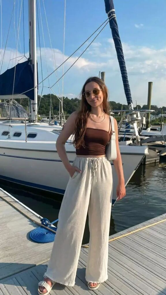 This is one of the most comfortable combinations I’ve worn. Wide-leg pants allow airflow, while a minimal top keeps things light.