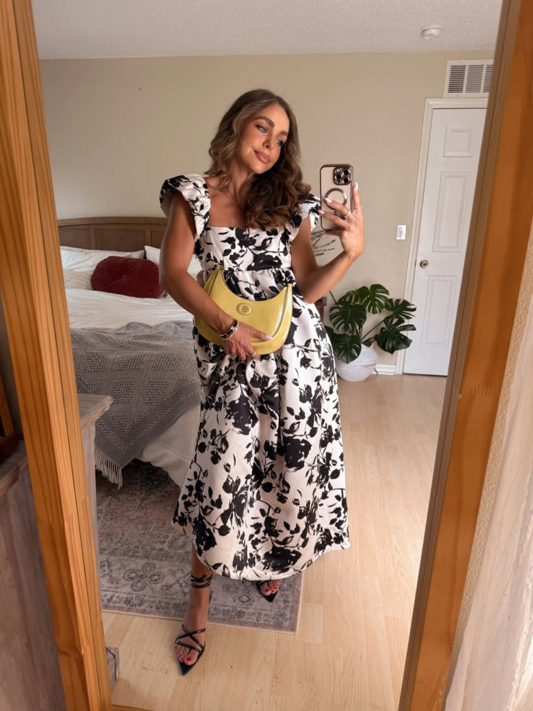 Florals remain a top trend every year because they match the season. I personally like adding a small colorful bag to make the outfit stand out.