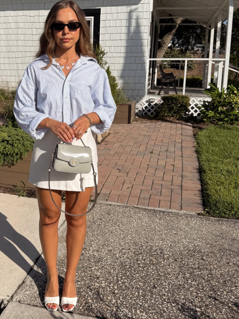 This is one of the most practical outfits for me because it works for both work and casual plans. The skirt adds movement, while the top keeps it structured.