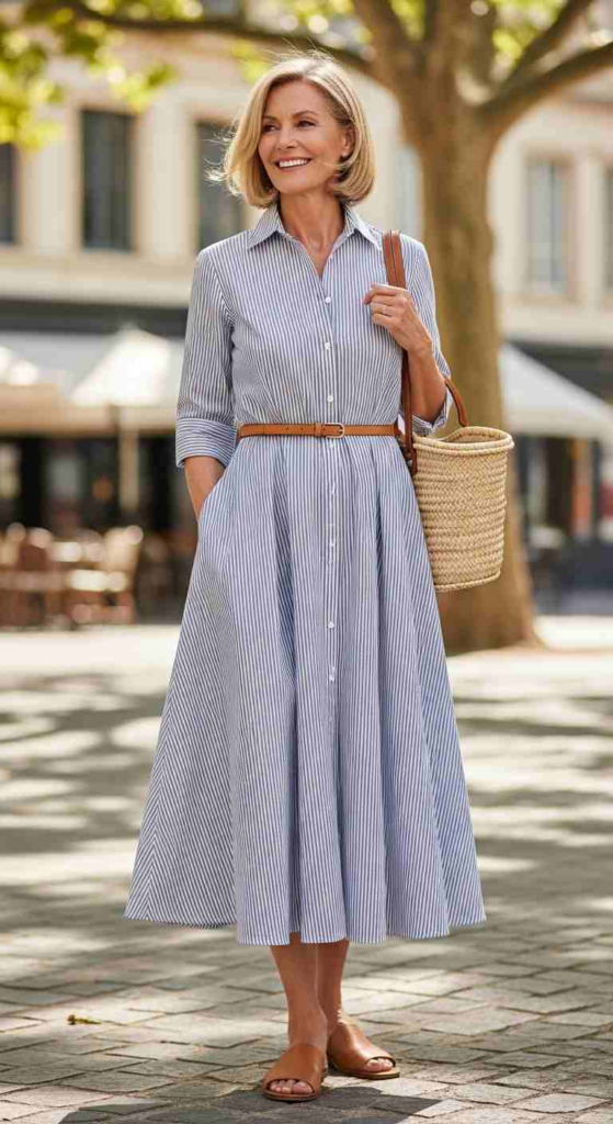 A midi shirt dress works when I need something quick yet polished. A belt adds shape without effort.