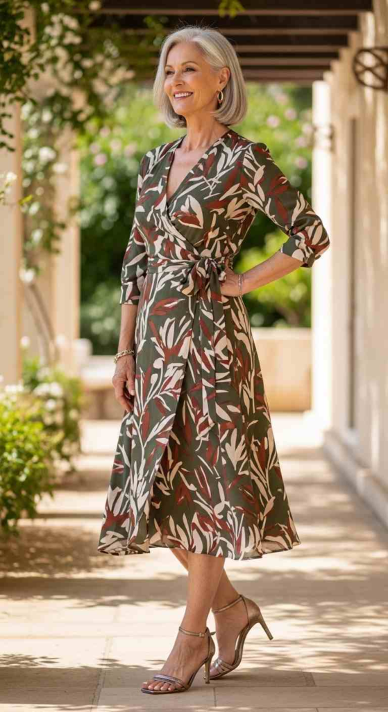 Wrap dresses adjust easily and highlight the waist naturally.