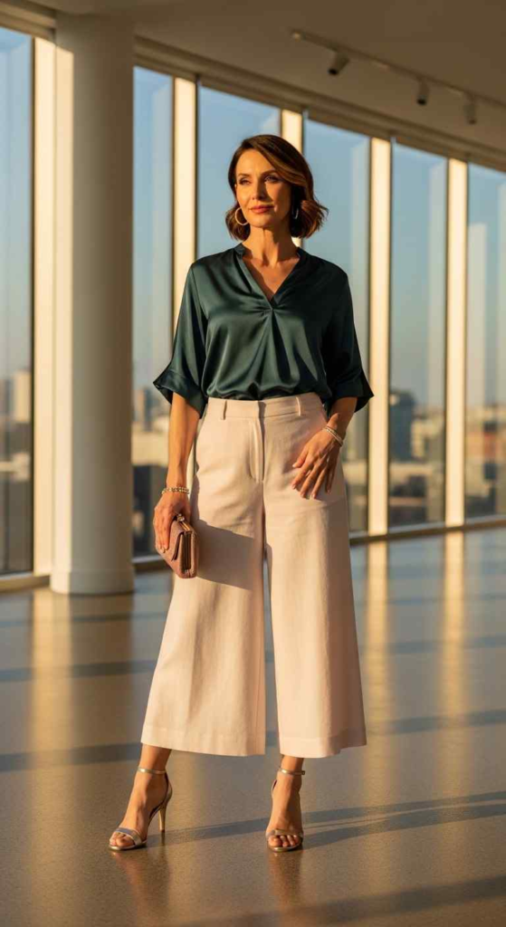 Culottes are airy and modern. I pair them with soft fabrics for balance.