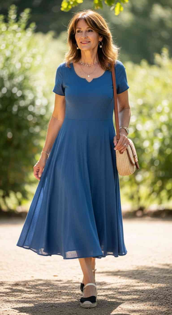 Maxi dresses feel effortless and comfortable for long days.