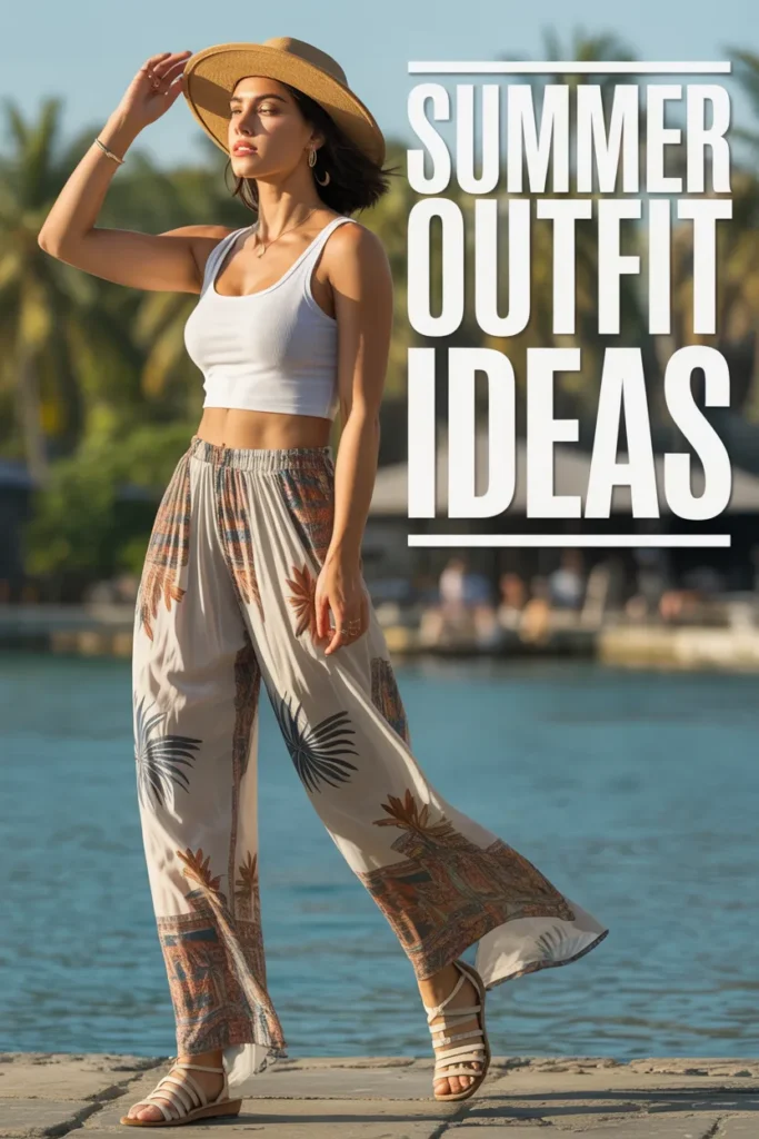 3. Printed Palazzo Pants and Crop Tank