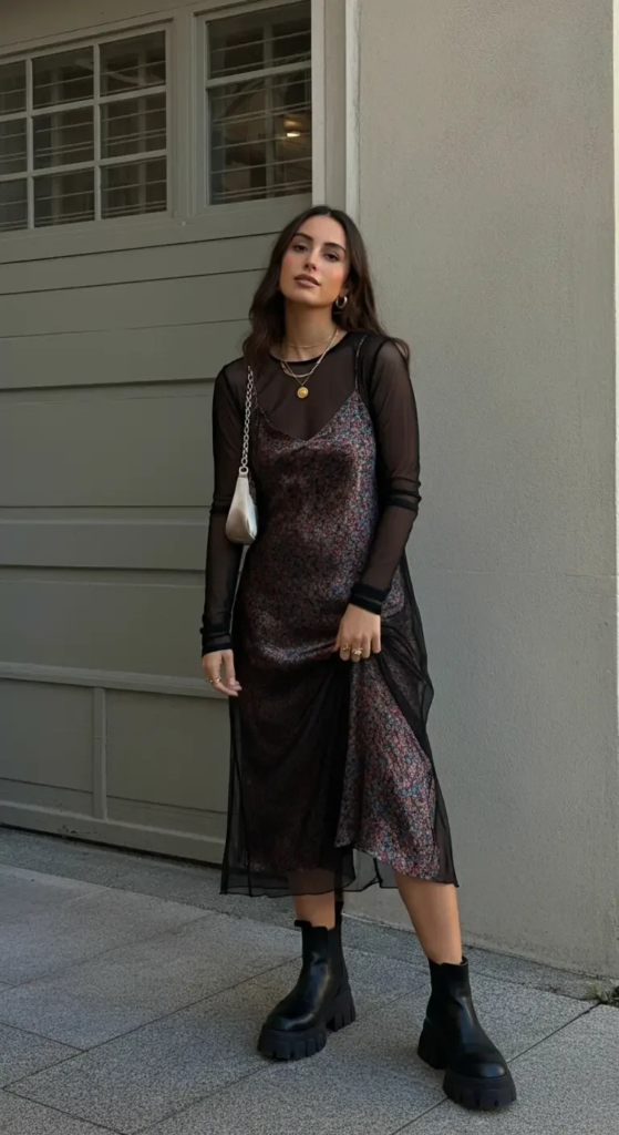 2. Slip Dress with Combat Boots