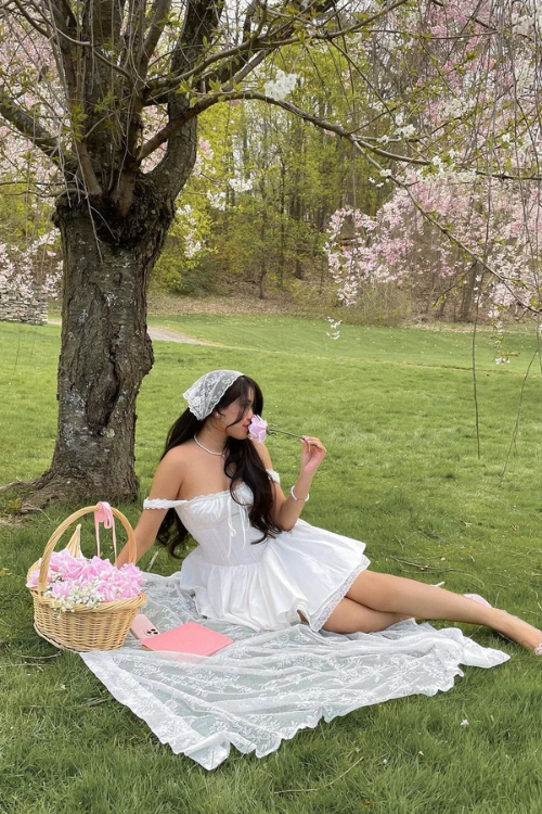 This section focuses on wearing a light and flowy maxi dress to capture a romantic and elegant style. The dress keeps the outfit airy and feminine, while pearl accessories add a refined finishing touch.
