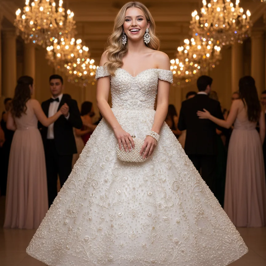 12. Pearl-Embellished Ball Gown