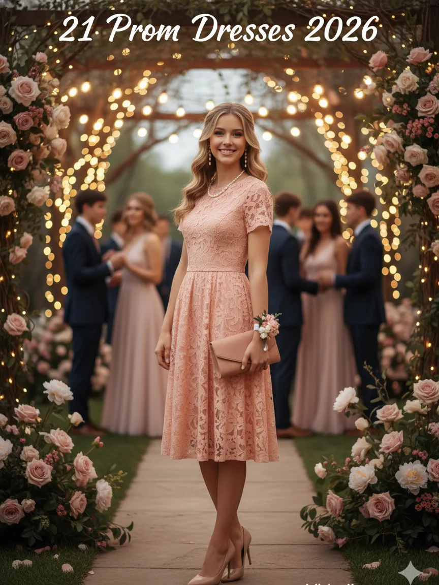 Tea-length dresses are ideal for comfort and movement. I’ve seen them work well for casual or daytime proms. Lace keeps the look soft and balanced.
