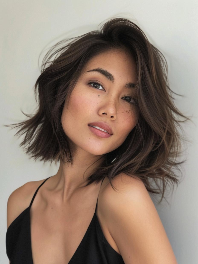 This style adds loose, textured waves throughout the hair to create movement and volume. The waves make the hairstyle feel lively and youthful. It’s a good choice for anyone who wants their hair to look energetic and stylish. The Pinterest photos help illustrate how textured waves bring extra personality to the lob.