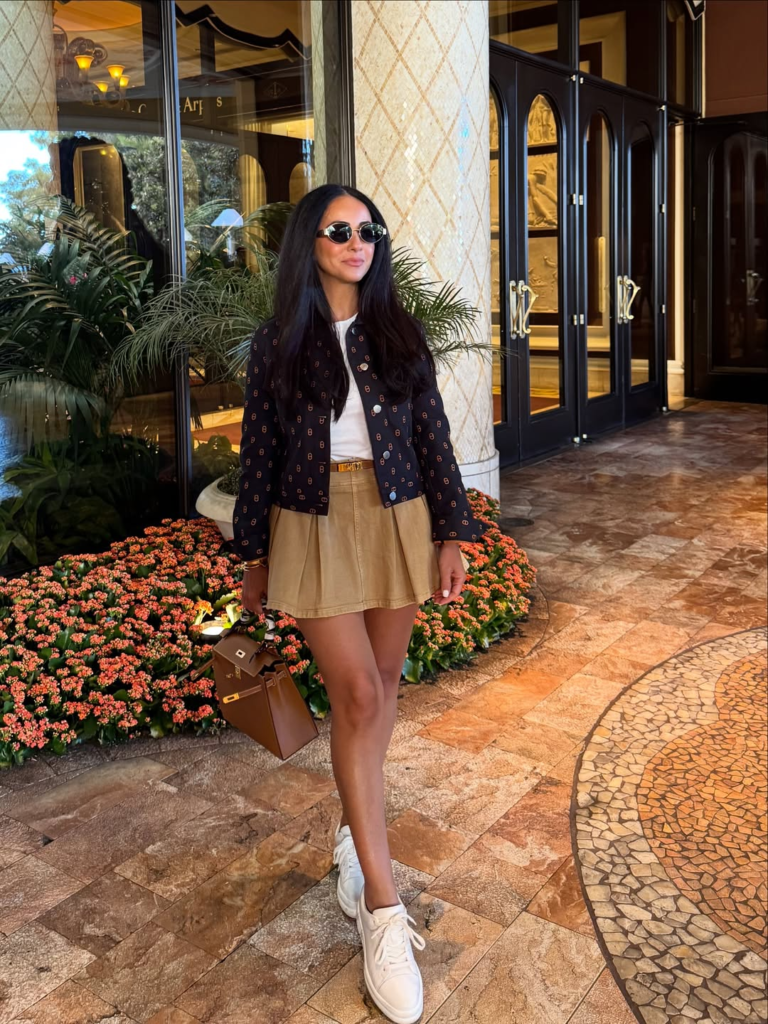 For resort days, I prefer outfits that feel relaxed but still styled. A skirt with sneakers works perfectly.