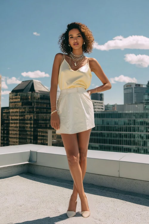 I wear this when I want a bold night look. The sparkle stands out while the skirt keeps it balanced.